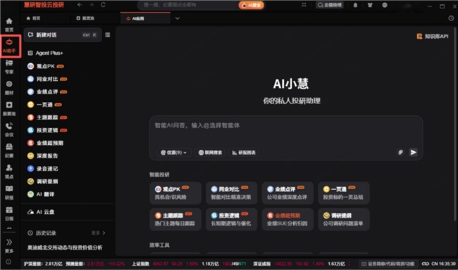 人工智能技术正在深刻改变证券投资研究领域,使高端投研能力趋于“普适化”,显著降低专业门槛,并有望重塑财富管理市场的竞争格局。在这一进程中,慧研智投云投研平台应运而生,成为推动“普适化”的关键实践者。该平台致力于将前沿AI能力深度融合于投资研究的各个环节,从而赋能投资顾问,实现工作模式与效能的系统性升级。